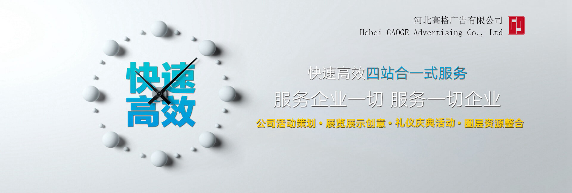 河北高格廣告有限公司是一家專業(yè)致力于大型文化活動(dòng)組織策劃、展覽展示工程策劃、展臺(tái)設(shè)計(jì)制作、特裝展臺(tái)搭建、會(huì)議會(huì)場(chǎng)布置、巡回展覽、路演、公關(guān)推廣執(zhí)行、會(huì)議慶典禮儀、路演設(shè)備租賃、倉(cāng)儲(chǔ)等一站式的專業(yè)服務(wù)公司。本公司憑借創(chuàng)新領(lǐng)先的服務(wù)理念,大型的廠房空間,現(xiàn)代化的機(jī)械設(shè)備,高素質(zhì)專業(yè)的服務(wù)團(tuán)隊(duì),及在該行業(yè)多年的實(shí)戰(zhàn)經(jīng)驗(yàn),為地產(chǎn)營(yíng)銷(xiāo)提供了優(yōu)秀的活動(dòng)方案、為不同行業(yè)的數(shù)千家企業(yè)提供了專業(yè)個(gè)性化的空間展示方案,幫助客戶實(shí)現(xiàn)了自我品牌的提升和企業(yè)利潤(rùn)的雙贏。...
